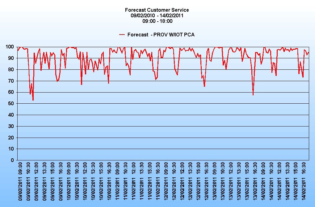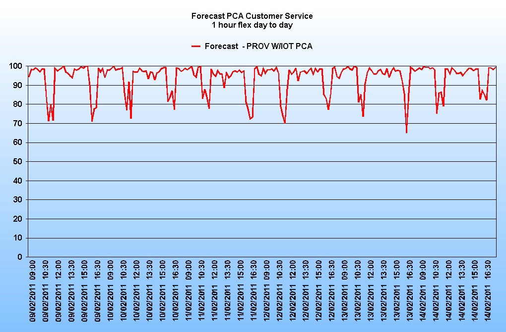 Using the same number of agents, this exercise demonstrates how the introduction of a little flexibility can have a marked impact on accurately meeting the requirements, and consequently on the service, offered to the customer both in absolute terms – a 6.4% increase in the PCA - but also in consistency – the PCA only dropping below 70% for one interval on one day. A little flexibility can make a big impact.