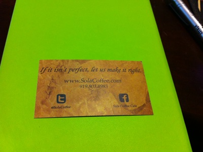 Sola uses the customer’s name when their order is ready; not a number. And often times, the regular baristas remember my name without even having to ask for it. Sola also offers a customer loyalty program. Purchase 9 drinks, and the 10th one is free. Their punch card reads: “If it isn’t perfect, let us make that right.”