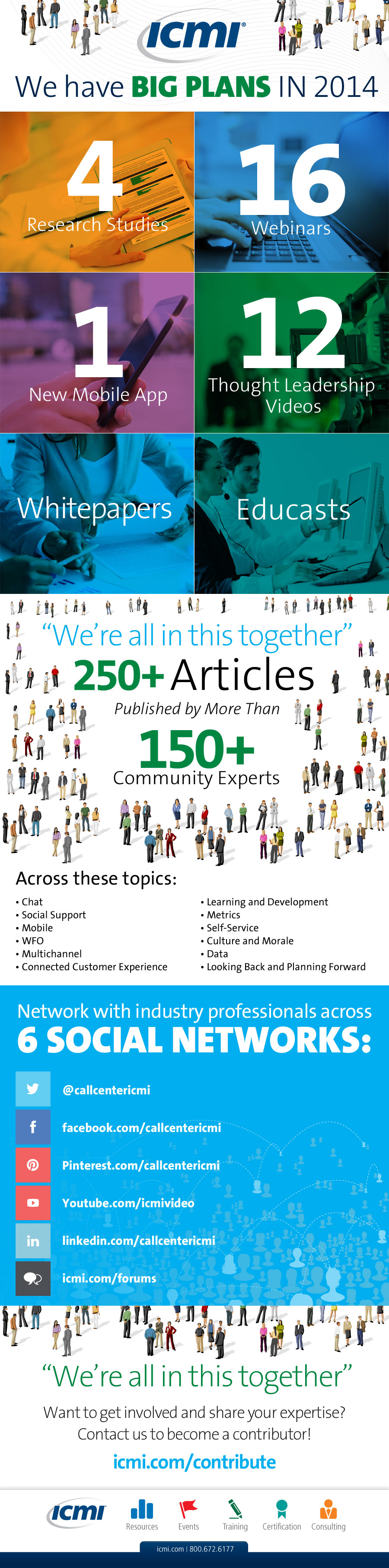As ICMI continues its endeavor to be the leading global provider of contact center resources, here are the insights we plan to share with our community in the next year: