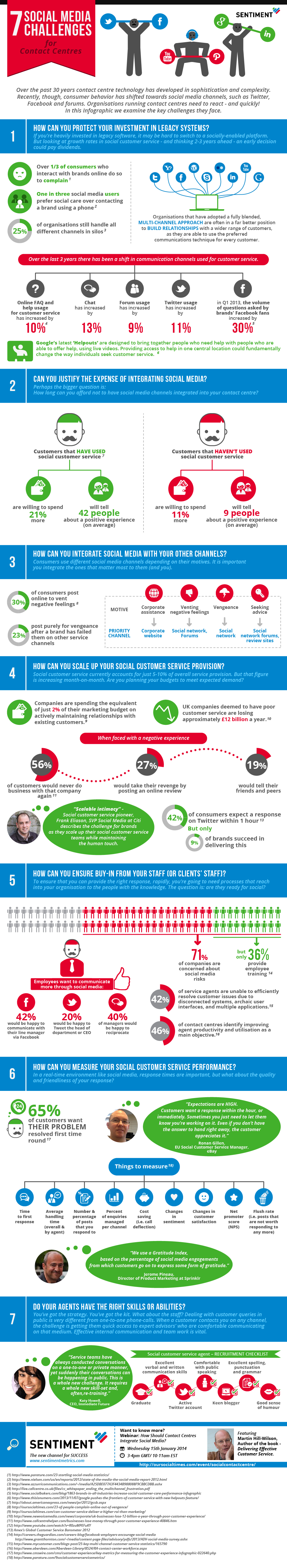 The difference here with this new way of communication is that it is no longer private. Businesses need to ensure that agents have the right skills and abilities to be able to move from channel to channel and still provide exceptional customer service. ‘Soft skills’ are extrememly important and the skills set required increases when social media is integrated. Sentiment has highlighted just some of the skills required (challenge 7).