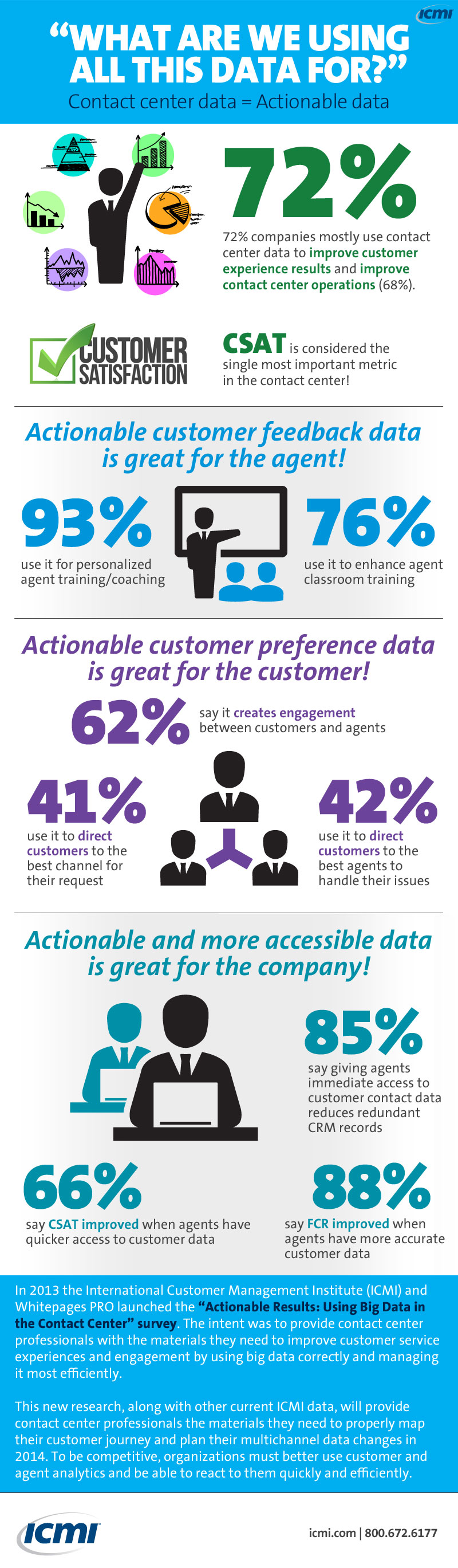 This year ICMI partnered with Whitepages PRO to launch the "Actionable Results: Using Big Data in the Contact Center" survey. The intent was to provide contact center professionals with the materials they need to improve customer service, experiences and engagaement by using big data correctly and managing it most efficiently.
